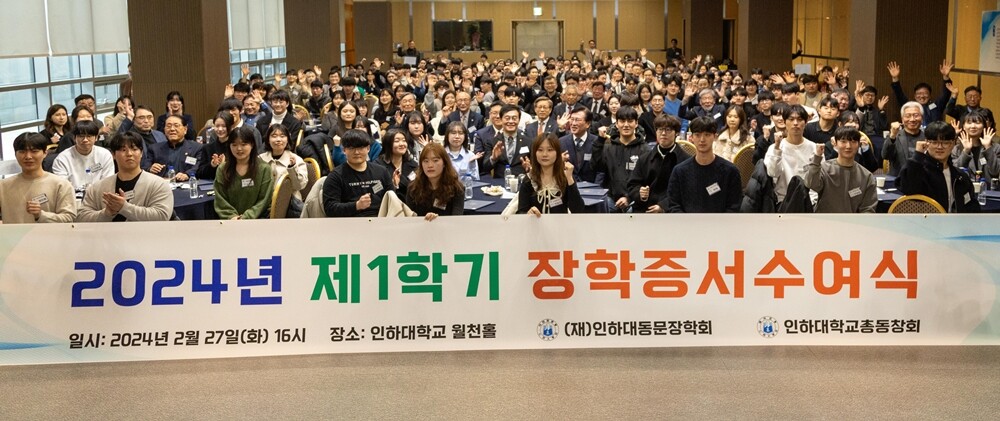 [대학저널 온종림 기자] ‘2024학년도 1학기 인하대학교 총동창회·(재)인하대동문장학회 장학증서 수여식’이 27일 인하대 60주년기념관 월천홀에서 열려 재학생 193명에게 총 2억 7천2백만원이 수여됐다.