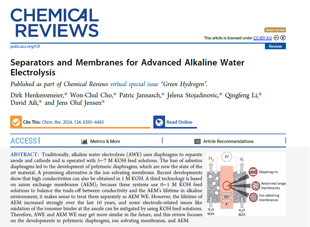 서울과기대 조원철 교수, 한국과학기술연구원(KIST)의 Dirk Henkensmeier 책임연구원, 그리고 스웨덴의 덴마크 기술 대학교(Technical University of Denmark: DTU) 공동 연구진은 대표적인 알칼라인/AEM 수전해 분리막인 다이아프램 분리막(Diaphgram membrane), 이온 음이온 교환막(Anion exchange membrane, AEM), 이온 용해막(ion-solvating membrane, ISM)의 특성, 개발 현황, 및 미래 개발 전략을 총정리해서 발표했다.