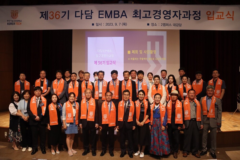[대학저널 온종림 기자] 한국기술교육대학교 대학원이 운영하는 ‘다담 EMBA최고경영자과정’ 제36기 입교식이 7일 천안 부대동 한기대 제2캠퍼스 대강당에서 개최됐다.