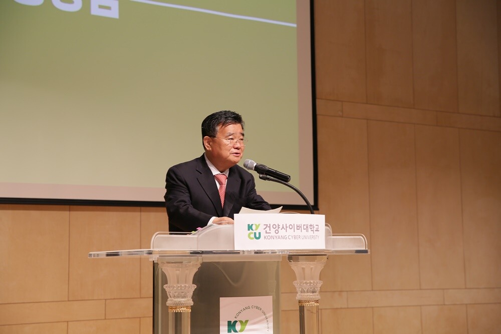 학생과 지역주민이 함께하는 ‘다경제(多慶際)’행사에서 축사하는 이동진 총장. 사진=건양사이버대 제공 |