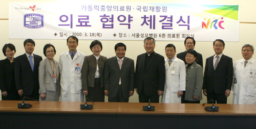 가톨릭중앙의료원과 국립재활원은 지난 18일 서울성모병원 6층 의료원보직자회의실에서 상호 협력을 통해 의료계의 공동발전을 추구하고, 환자 상호 진료의뢰 등 국민건강 증진에 기여하기 위해 의료 협약을 체결했다.