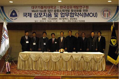 대구가톨릭대가 의료용 섬유 개발에 나선다. 대구가톨릭대는 지난 2월 19일 오후 대구 인터불고호텔에서 한국섬유개발원(원장 이춘식)과 첨단 융합소재, 의료용 섬유 등 첨단 과학기술분야의 국내 기술발전과 기술혁신을 위해 상호 협력하기로 하고 협정서를 맺었다.