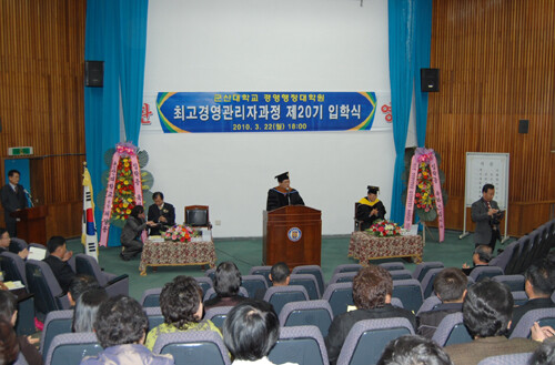 군산대학교의 최고경영관리자과정은 기업이나 각종 기관의 경영자로 하여금 환경변화에 능동적으로 대처하고 지도자로서 갖추어야 할 폭넓은 관리능력과 자질을 함양시키기 것을 목적으로 한다. 1995년 9월 개설해서 1996년 제 1기 수료생 93명을 배출한 후 2010년 19기까지 총 1,078명의 수료생을 배출하였다. 이번 제 20기 입학식에는 김선우 외 60명이 입학하였다.
