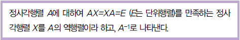 정의는“문장”또는“식”으로 표현된다. 앞서 언급했던‘소녀시대’나 기타 그룹들은 문장으로 표현이 될 것이다. 물론 누군가 식으로 표현할 수 있다면 그 기발함에 다들 신기해할 것이다. 수학에서 정의는 문장이나식으로 표현이 되는데, 역행렬의 정의를 살펴보자.