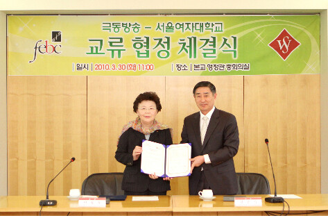 서울여자대학교(총장 이광자)는 극동방송(사장 김은기)과 30일(화) 오전 11시 서울여자대학교 행정관 중회의실에서 상호간 협력체계 확립을 위한 MOU를 체결했다.