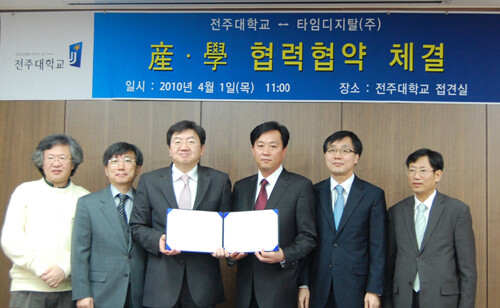 전주대(총장 이남식)는 4월 1일(목) 오전 11시 타임디지탈(주)(대표이사 김한석)과 양 기관 임원 7명이 참석한 가운데 협약을 체결했다.