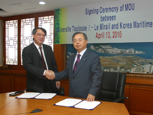 한국해양대학교(총장 오거돈)는 13일 프랑스 뚤루즈Ⅱ대학(Universite′ Toulouse Ⅱ - Le Mirail)과 국제학술교류협정(MOU)을 체결했다. 이번 협정은 프랑스를 비롯한 유럽에 흥미가 있는 한국해양대학교 학생들과 동아시아에 관심을 갖는 뚤루즈Ⅱ대학교 학생들 간 언어문화교육의 욕구 충족 및 질적 향상을 목표로 하고 있으며 인문사회학 분야를 전공한 교수와 연구자들의 학문적 교류를 활성화하는 상호 업무 협력을 구축하는 데 역점을 두고 있다.
