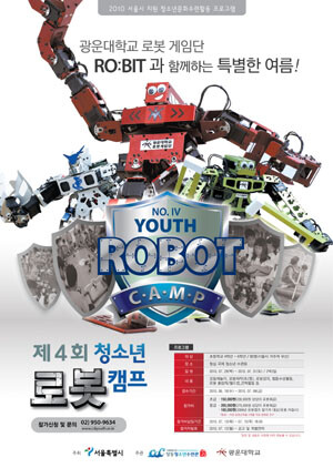 이번 ‘제 4회 광운대학교 청소년 로봇 캠프’는 초등학생 4학년~ 6학년이면 누구나 참가 할 수 있으며 참가신청은 창동청소년 수련관 홈페이지(www.cdyouth.or.kr)에서 신청서를 다운로드 받아 작성한 후 접수처(창동 수련관 1층 안내데스크)에 직접 제출하거나 이메일(wjdals9680@hanmail.net)로 접수하면 된다. 참가비는 초급의 경우 150,000원이며 중급은 200,000원이다. 신청기간은 2010년 7월 9일 18:00까지 이며 선정자 발표는 2010년 7월 12일 에 창동청소년 수련관 홈페이지에서 확인할 수 있다.