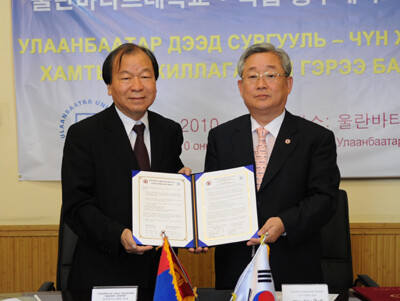 충주대(총장 장병집)는 몽골 울란바타르대(총장 최기호)와 지난 6월 30일 울란바타르대에서 국제교류활성화 및 교육ㆍ연구에 관한 국제교류협정을 체결했다고 1일 밝혔다.