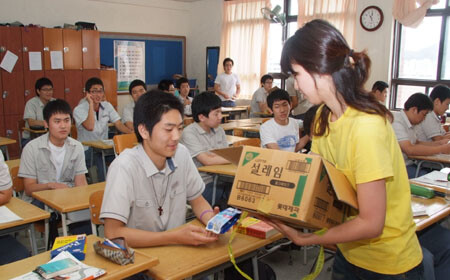 '해피주자'는 수능을 앞두고 여름방학 중에도 학교에 나와 무더위 속에서 수험공부에 열중하고 있을 학생들에게 아이스크림과 치즈케익을 나누는 행사다. 잠시 동안의 시원한 휴식시간을 통해 행복한 자율학습 시간이 될 수 있도록 마련해 뜨거운 호응을 받고 있다.