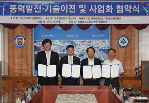 군산대(총장 채정룡) 산학협력단(단장 최윤)은 9일 오전 11시 제1소회의실에서 (주)현대하이테크·(주)에이티티와 풍력가로등 기술이전 및 사업화를 위한 협약식을 가졌다고 밝혔다.