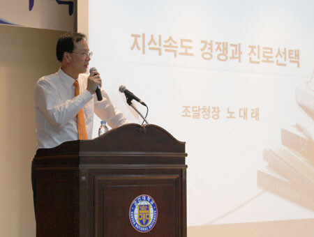 군산대(총장 채정룡)는 지난 10월 5일 오후 4시 군산대 황룡문화관에서 교직원 및 학부생 200명을 대상으로 '지식속도 경쟁과 진로선택'이라는 주제로 특강을 했다고 밝혔다.