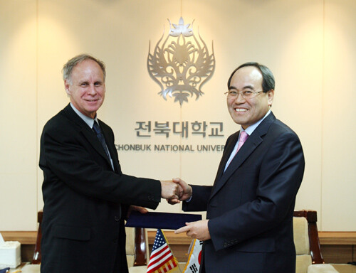 미 발파라이소대 데이비드 로렌드 부총장은 7일 전북대를 방문해 서거석 총장과 공식 협정식을 가졌다.