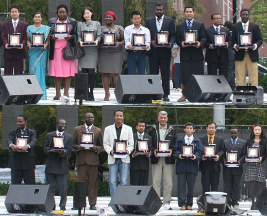 '한경대 국제홍보대사 된 해외 공무원들' = 방글라데시, 라오스, 스리랑카, 가나, 네팔, 미얀마, 몽골, 베트남, 케나 등 아시아와 아프리카 국가 식량·농업 관련 공무원 20명이 13일 한경대 국제홍보대사로 위촉됐다. 한경대 '국제농업·농촌개발분야 석사학위연수'를 위해 유학 중인 이들은 앞으로 외국 인사 방문시 친선대사 역할을 담당하게 된다. 방글라데시 식품농업부에 근무하는 마하마 당가나(45)씨는 "한국에서 국제홍보대사로 활동할 수 있게돼 기쁘게 생각한다"면서 "한경대를 외부에 알리는데 힘쓰며, 향후 가나와 한국과의 더 좋은 관계를 위해서도 노력하고 싶다"고 포부를 밝혔다. 위촉식 이후에는 몽골의 쿠슈아(우리나라 만두와 비슷), 스리랑카의 마살라 바다(튀김 음식), 아프리카의 졸로프 라이스(볶음밥) 등 각 나라 음식을 재학생들과 함께 시식하는 행사도 열렸다.