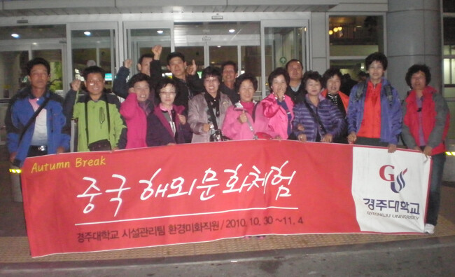 학기중 브레이크(Break)제를 실시, 이 기간 동안 학내 구성원들에게 해외문화체험 기회를 제공하고 있는 경주대(총장 이순자)가 학교에 근무하는 환경미화원들에게도 해외문화체험 기회를 제공, 눈길을 끌고 있다.