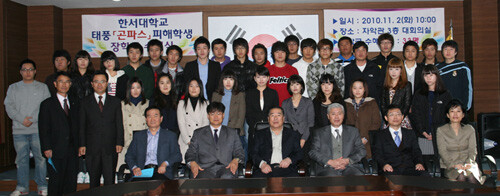 한서대(총장 함기선)가 태풍 곤파스로 피해를 입은 학생들에게 장학금을 수여했다.