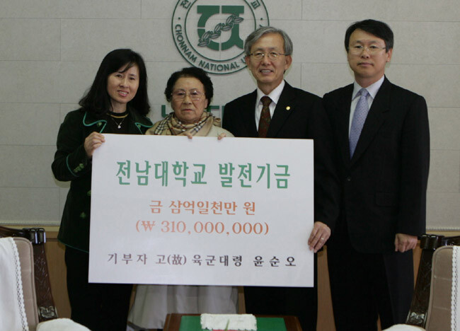 한편 전남대는 기부금을 공과대학과 사회과학대학 학생들을 대상으로 '무강(武崗) 윤순오 장학금'으로 사용할 예정이다.