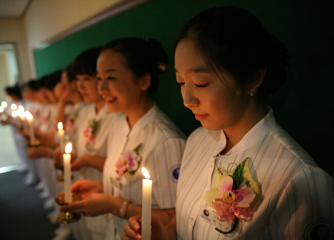 "성신여대 나이팅게일 선서식 개최" 성신여대(총장 심화진)는 5일 교내 수정관 420호에서 '제3회 간호학과 나이팅게일 선서식'을 개최했다. 이번 선서식에는 심화진 총장, 송지호 간호대학장, 이홍순 국립중앙의료원 부원장, 최규옥 간호대학 동문회장 등이 참석했다. 선서식에서 간호학과 학생들은 임상실습에 임하기 전, 나이팅게일의 숭고한 간호정신을 이어받아 사랑과 봉사를 바탕으로 미래 간호사가 되겠다는 책임과 긍지를 다짐했다.