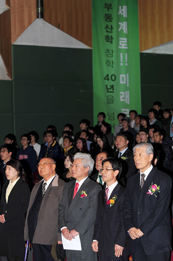 이날 기념식에서 김진규 총장은 “건국대 부동산학의 역사가 바로 우리나라 부동산학의 역사”라며 “이제 건국대 부동산학 프로그램은 법인과 학교의 끊임없는 지원과 교수, 재학생, 동문들의 땀과 노력이 모아져 우리나라의 부동산 학문과 부동산 산업을 이끄는 대표 주자로서의 위치를 공고히 하고 있을 뿐 아니라 세계와 경쟁하는 프로그램으로 나아가고 있다”고 축하했다.