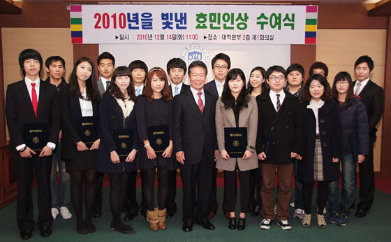 이번에 선정된 학생들에게는 각각 50만 원의 장학금이 지급되고 동의대는 올해를 빛낸 효민인상을 정례화해 매년 연말에 시상식을 갖기로 했다.