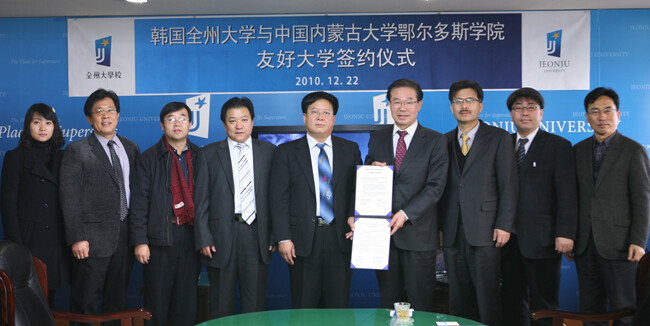 전주대(총장 이남식)는 22일 오전 교내에서 중국 오르도스대학(총장 사간-바특얼) 방문단과 양 대학간 상호협력과 우호증진에 관한 방안을 협의했다고 밝혔다.