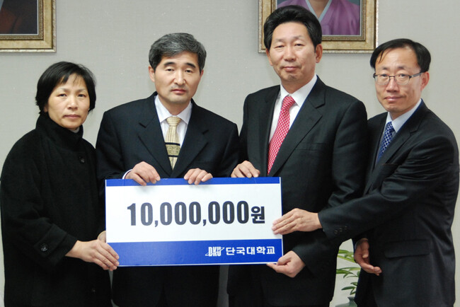 고인의 부모는 4일 오후 고인이 재학했던 단국대 천안캠퍼스를 방문한 자리에서 장호성 총장에게 1천 만원의 장학금을 전달했다.