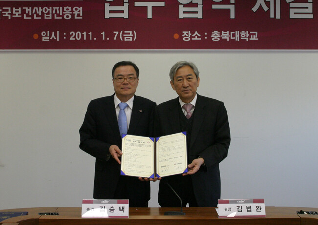 충북대 관계자는 "향후 양 기관의 상호 유기적인 업무협조 관계를 통해 보건산업 발전에 크게 기여할 것으로 기대된다"고 말했다.