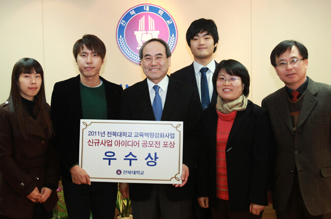 전북대는 19일 총장실에서 교육역량강화 신규사업 공모전에서 우수 아이디어로 선정된 6개 팀에 대해 시상식을 가졌다. 전북대는 교육역량강화사업을 보다 내실있게 준비한다는 차원에서 지난해 12월 13일부터 27일까지 2주간 학교 구성원을 대상으로 아이디어 공모전을 진행했다. 그 결과, 총 149개 팀이 151건의 아이디어를 출품해 6개 팀이 최종 선정됐다.