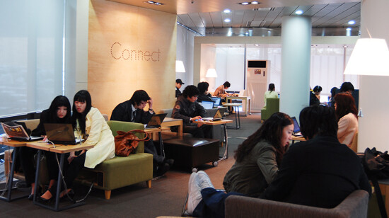 홍보대사들과 발걸음을 옮긴 곳은 중앙도서관이다.“중앙도서관에는 학습을 위한 열람공간뿐 아니라 미디어룸도 있어 학생들이 최신 DVD 등을 시청해요.”배다솜 씨의 말이다. 미디어 룸을 방문하자 DVD로 영화감상을 즐기고 어학 공부를 하는 학생들이 눈에 띄었다.