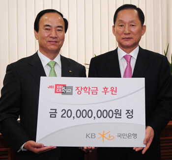 이날 장학금 전달식에는 국민은행 강문호 인천남지역본부장과 이황희 동인천지점장 등 은행 관계자와 재능대학 이기우 총장, 오영환 사무처장 등 대학 관계자가 참석했다.