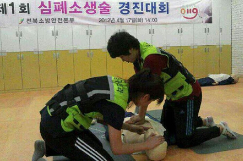 17일 원광대에 따르면 전라북도 주관으로 전주에서 열린 제1회 전북심폐소생술 경진대회는 도내 시ㆍ군에서 의용소방대원・일반인, 대학생 등 10개 팀이 참가해 2인 1조로 대회를 치렀다. 익산대표로 출전한 고은별, 김한빛 씨는 정확하고 신속한 처치로 우수평가를 받아 1등을 차지하고 오는 5월 대구에서 열리는 전국대회에 전북대표로 출전하는 자격도 획득했다.