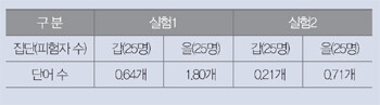 50명의 피험자를 무작위로 집단 ‘갑’과 집단 ‘을’로 나누었다.