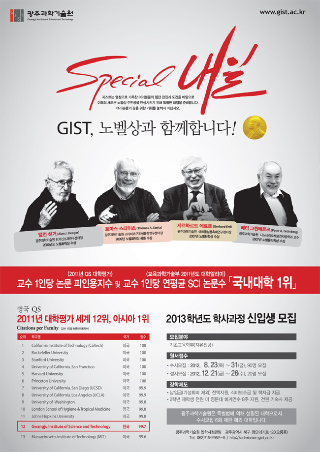 GIST는 향후 20년 후 CALTECH에 버금가는 세계적인 공과대학으로 성장해 기존의 주입식 교육에서 벗어