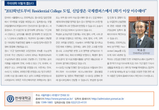 특히 인천 국제캠퍼스의 교육 인프라를 적극 활용해 선진 명문형 교육 모델인 레지덴셜 칼리지(Residential College) 시스템을 도입함으로써 한국 대학교육에 새 변화를 일으키고 있다.