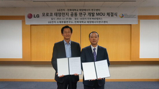 센터는 최근 LG전자 소재부품연구소(소장 이정수)와 모로코 태양전지 연구 개발 및 관련 사업 수행에 협력하는 내용을 골자로 하는 MOU를 체결했다. 또한 모로코 국가연구소인 신재생에너지연구소 IRESEN(소장 Badr Ikken)과도 MOU를 체결해 긴밀한 협력을 이어나가기로 했다.