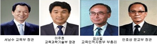 ■교육부 장관 평균 임기 1년 2개월, 단명 장관도 다수='문교부→교육부→교육인적자원부→교육과학기술부→교육부', 우리나라 교육부가 걸어온 역사다. 1948년 '정부조직법' 제정에 따라 문교부가 출범했다. 이후 1990년 '정부조직법' 개정으로 문교부 명칭은 교육부로 개칭됐다. 이어 교육부는 노무현정부 들어 교육인적자원부로 변경된 뒤 이명박정부에서 교육과학기술부(이하 교과부)로, 현 박근혜정부에서 다시 교육부로 명칭이 바뀌었다. 특히 교육인적자원부에서는 장관이 부총리로 승격되기도 했다.