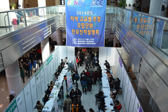 한편 행사 당일 충북대에서는 참가자에 한해서 입학사정관제의 이해와 전공 및 진로탐색을 위해 제작한 '2014년 충북대학교 모집단위 전공·진로 길라잡이'를 비롯해 '2015학년도 충북대학교 대학입학전형 기본계획 주요사항 안내 책자', '2015학년도 충북대학교 입학사정관제 가이드북' 등을 배부할 예정이다.