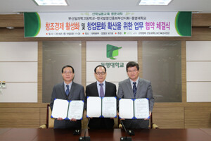 동명대-부산일과학고-한국발명진흥회 부산지회 등 3개 기관은 이로써 ▲발명특허 교육과 전공기술 융합 교육 ▲아이디어 창출, 아이디어 보호 및 활용 교육 ▲아이디어 권리화 및 특허 출원 ▲다양한 실습 장비 활용 ▲발명품의 설계 및 제작 등을 협력하게 된다.