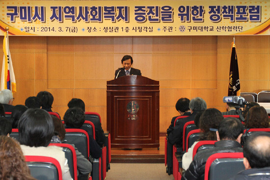 이날 발표는 한국보건사회연구원 김승권 박사(지역사회보장발전연구센터장)의 ‘현 정부의 지역사회복지 정책방향’과 경북대 이경은 교수(사회복지과)의 ‘구미시 분야별 지역사회복지의 현황과 나아갈 길’에 대한 주제발표가 진행됐다.