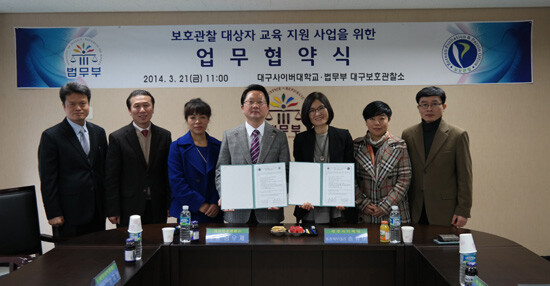 대구보호관찰소 회의실에서 열린 체결식에는 성우제 법무부 대구보호관찰소장과 송유미 대구사이버대 총장직무대리, 각 기관 실무진 등이 참석했다.
