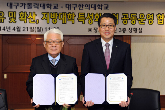 교육부가 주관하는 지방대학 특성화사업 지역전략분야에 ‘양·한방 통합의료 치료제 및 치료기술개발 인력양성사업단’을 공동 추진하면서 교육 프로그램과 교육적 성과를 상호 교류하기로 했다.