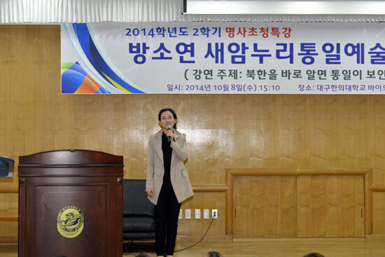 이번 특강은 재학생 200여 명이 참석한 가운데, 방소연 새암누리통일예술단장이 진행했다.