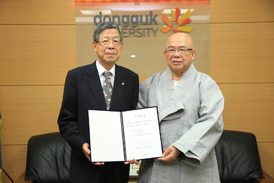 지난 14일 오후 4시, 원산스님은 동국대 김희옥 총장을 방문해 건학108주년 기념관 건립을 위해 사용해 달라며 1억 원을 전달했다.