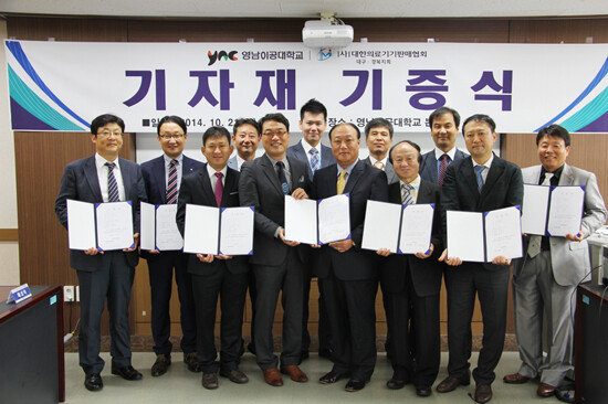 기증품목은 고주파 치료기를 비롯한 최신의료기기 23종이다. 영남이공대 의료기기과, 간호학과, 스킨케어과 등의 현장수업에 필수적인 장비들이다. 이날 기증식에는 사)대한의료기기판매협회 대구경북지회 엄태건 회장(태준메디칼 대표), 대한위재종합상사 유장열 수석부회장, 신진의료기 이종권 부회장 등 총 13개 업체대표들이 참석했다.
