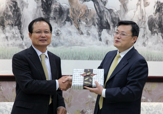 이날 오후 산둥대에서 진행된 협약식에는 송희영 건국대 총장, 장룽(張榮) 산둥대 총장을 비롯해 양 대학 관계자 10여 명이 참석했다.