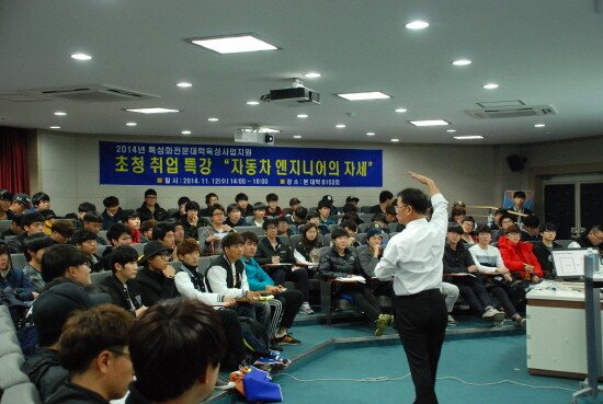 장성택 이사는 “자동차산업 분야에서 성공하는 사람의 중요한 덕목으로 협업을 위한 커뮤니케이션 능력과 미래를 위해 먼저 공부하고 준비하는 자세가 필요하다”며 학생들에게 이를 위해 노력해 달라고 주문했다.