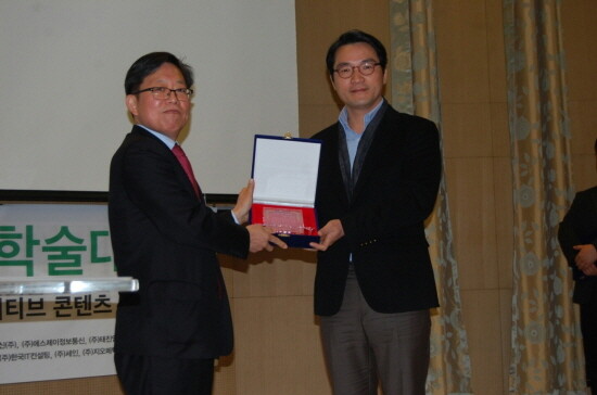 한밭대학교(총장 송희영) 시각디자인학과 노황우 교수가 21일 삼육대학교(다니엘-요한관)에서 열린 ‘2014 한국콘텐츠학회 추계종합학술대회’에서 우수논문 학술상을 수상했다.