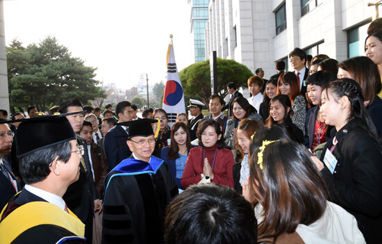 이날 행사에는 테인 세인 대통령을 비롯, 미얀마 외교부 장관 등 수행각료, 주한 미얀마대사 등과 부경대 김영섭 총장, 대학원장 등 보직교수와 전임총장, 총동창회장, 부경대의 미얀마 학생 등 200여 명이 참석했다. 테인 세인 대통령은 정치·경제·사회분야의 개혁개방 정책을 통해 미얀마 민주화와 국가발전에 기여한 공로를 인정받아 이번 박사학위를 수여받게 됐다.
