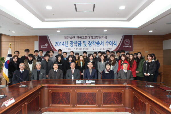(재)한국교통대학교 발전기금이 15일 대학본부에서 재단이사와 대학 주요 보직자가 참석한 가운데 재학생 170명(기계공학과 한규민 외 169명)에게 장학증서와 장학금으로 총 1억7000만 원(1인당 100만 원) 전달했다.