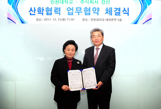 최성을 총장은 “인천대가 주식회사 경신의 기술개발을 지원하고, 기술개발에 참여한 학생들이 현장실습과 인턴쉽을 통해 실무능력을 제고하여 주식회사 경신에 취업하는 체계적인 산학협력으로 발전하길 바란다”고 기대를 밝혔다.